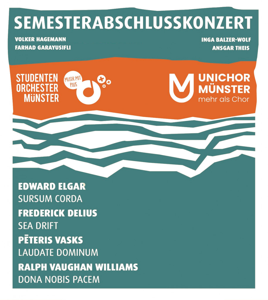 Auf Edward Elgars „Sursum corda“ etwa. Oder die Kantate „Dona nobis pacem“ von Ralph Vaughan Williams. Auch die rührend traurige Geschichte von einem Vogelpärchen, erzählt von Frederic Delius, gehört hierzulande zu den absoluten Programmraritäten. Wie gut, dass sich das Studentenorchester Münster und der Unichor gemeinsam dieser Musik verschrieben und sie für ihr Semesterabschlusskonzert einstudiert haben. Resultat: zwei dichte Stunden! Hoch romantische Musik voller Suggestionskraft mit Riesenchor und Riesenorchester…